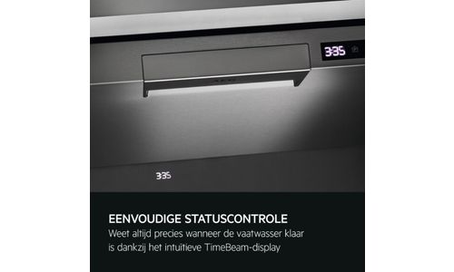 Dankzij de TimeBeam bent u in één oogopslag volledig op de hoogte van de cyclus van uw vaatwasser. Terwijl de cyclus bezig is, projecteert de TimeBeam-technologie de resterende tijd op de vloer. Eenvoudig, duidelijk en efficiënt.