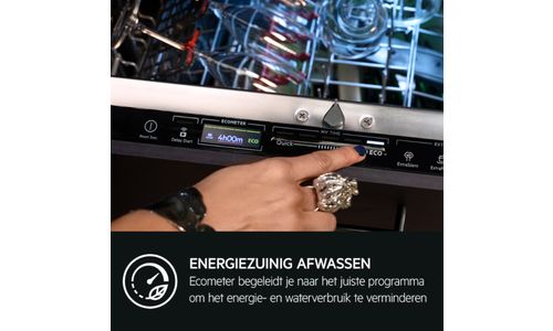 Verantwoorde keuzes worden makkelijk gemaakt. Gebruik de QuickSelect-schuifregelaar op het aanraakscherm om je gewenste cyclustijd te selecteren en de Ecometer toont je via groene aanduidingen het meest duurzame programma om energie en water te besparen.