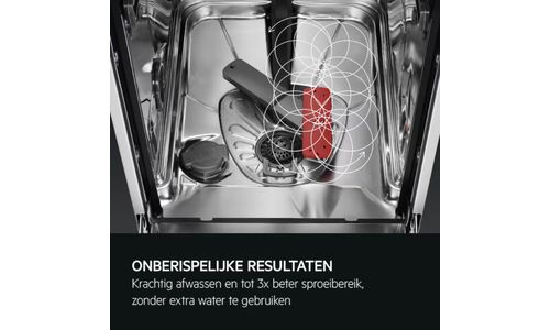 Geniet van vlekkeloze reiniging van de vaat met SatelliteClean®. Deze sproeiarm heeft een drie keer beter bereik dan de standaardnorm. Dankzij de dubbele roterende arm die voortdurend de sproeihoek wijzigt. Het water komt overal. Voor een complete reiniging.