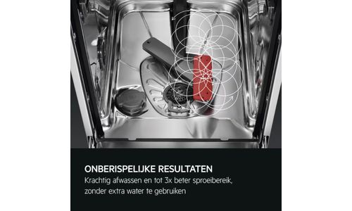 Geniet van vlekkeloze reiniging van de vaat met SatelliteClean®. Deze sproeiarm heeft een drie keer beter bereik dan de standaardnorm. Dankzij de dubbele roterende arm die voortdurend de sproeihoek wijzigt. Het