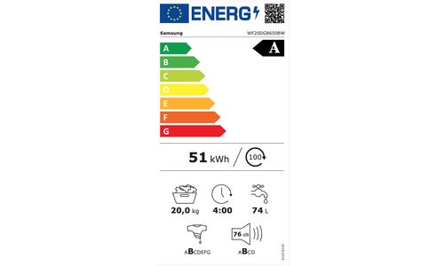 20KG - 1000TPM - ENERGIELABEL B - AI WASH - GEPERSONALISEERDE PROGRAMMA'S MET CLOTHING CARE - ECOBUBBLE - SPEED SHOT (30'- 3kg) - MICROPLASTIC-CYCLUS - HYGIËNISCH STOMEN - COMPATIBEL MET SMARTTHINGS - AI ENERGY MODE - DIGITAL INVERTER - WITTE BUITENKANT * ZILVER PANEEL * ZILVERE DISPLAY * ZWARTE DEUR * DECO DEUR ZWART