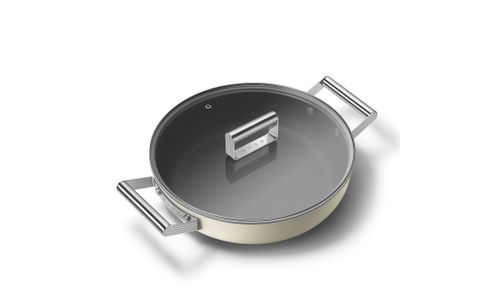 De sauteerpan wordt compleet geleverd met een deksel van gehard glas met roestvrijstalen knop.