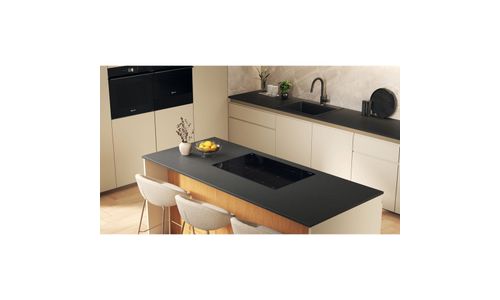 De kookplaat kan zo worden geplaatst dat ze volledig gelijk ligt met het werkblad. Zo creëer je een elegant doorlopend geheel met een stijlvolle, minimalistische look.