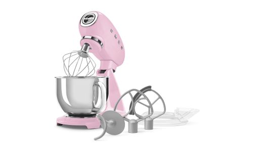 Prestaties en elegantie beschrijven op zijn best het ontwerp van de mixer/keukenrobot in jaren 50-stijl, een functioneel hulpmiddel dat verfijning en stijl in de keuken geeft