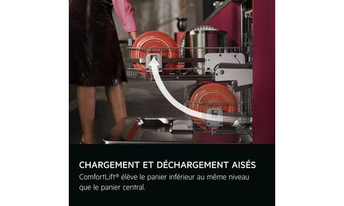 ComfortLift® brengt een volle korf tot 25 cm naar omhoog, zodat hij sneller en eenvoudiger kan worden in- en uitgeladen. Als de onderste korf eruit wordt getrokken, brengen speciaal ontworpen scharnieren deze korf naar hetzelfde niveau als de bovenste korf.