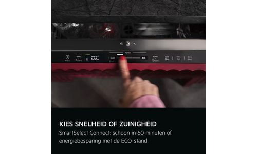 Het SmartSelect Connect-display en de app tonen de duur en het energieverbruik van elk programma. Kies voor een snelle reiniging in 60 minuten of bespaar energie met het ECO-programma: altijd een vlekkeloos resultaat. De app biedt tips voor belading, programma’s en onderhoud.