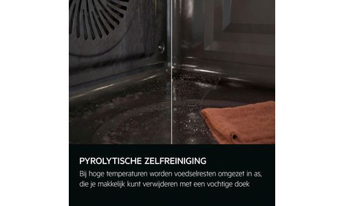 Dankzij een hoge temperatuur zet de pyrolytische reinigingsfunctie vet en voedselresten om in as, die je gemakkelijk kunt verwijderen met een vochtige doek.