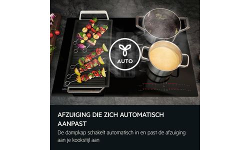 Automatische regeling van de afzuiging zorgt ervoor dat je je kunt richten op wat belangrijk is: koken. De kookplaat schakelt de afzuiging automatisch in en past het niveau aan op basis van je kookactiviteiten, zodat je keuken fris blijft en je handen vrij zijn.