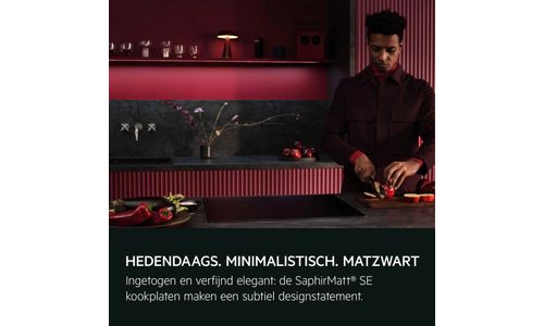 De subtiel matzwarte afwerking van de SaphirMatt® SE kookplaat is bestand tegen dagelijks gebruik en is krasbestendiger dan onze standaard inductiekookplaten. Dankzij de verfijnde, ingetogen elegantie past hij perfect in moderne keukenontwerpen.