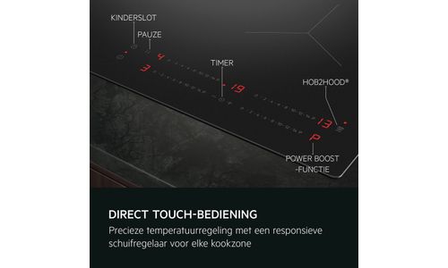 De Hob2Hood®-functie verbindt de kookplaat en de dampkap. De dampkap past automatisch de ventilatorsnelheid aan op basis van de warmte, zonder dat er een vinger wordt uitgestoken. Voor krachtige extractie bij dichtschroeien. En stillere extractie bij het sudderen.