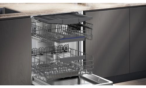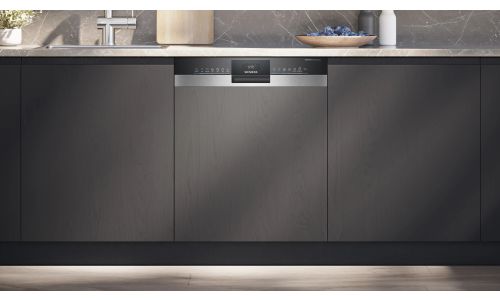 Vaatwasser IQ300 Integreerbaar - 60 x 81,5 - 87,5 cm Klasse A, Home Connect, 6 progr, 5 functies, inox front, warmtewisselaar / drying assist, kuip inox, 9,0 l, 42 dB, besteklade, Flex korven, Rackmatic 3, 7 segments display direct select Geborsteld staal A