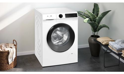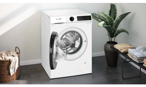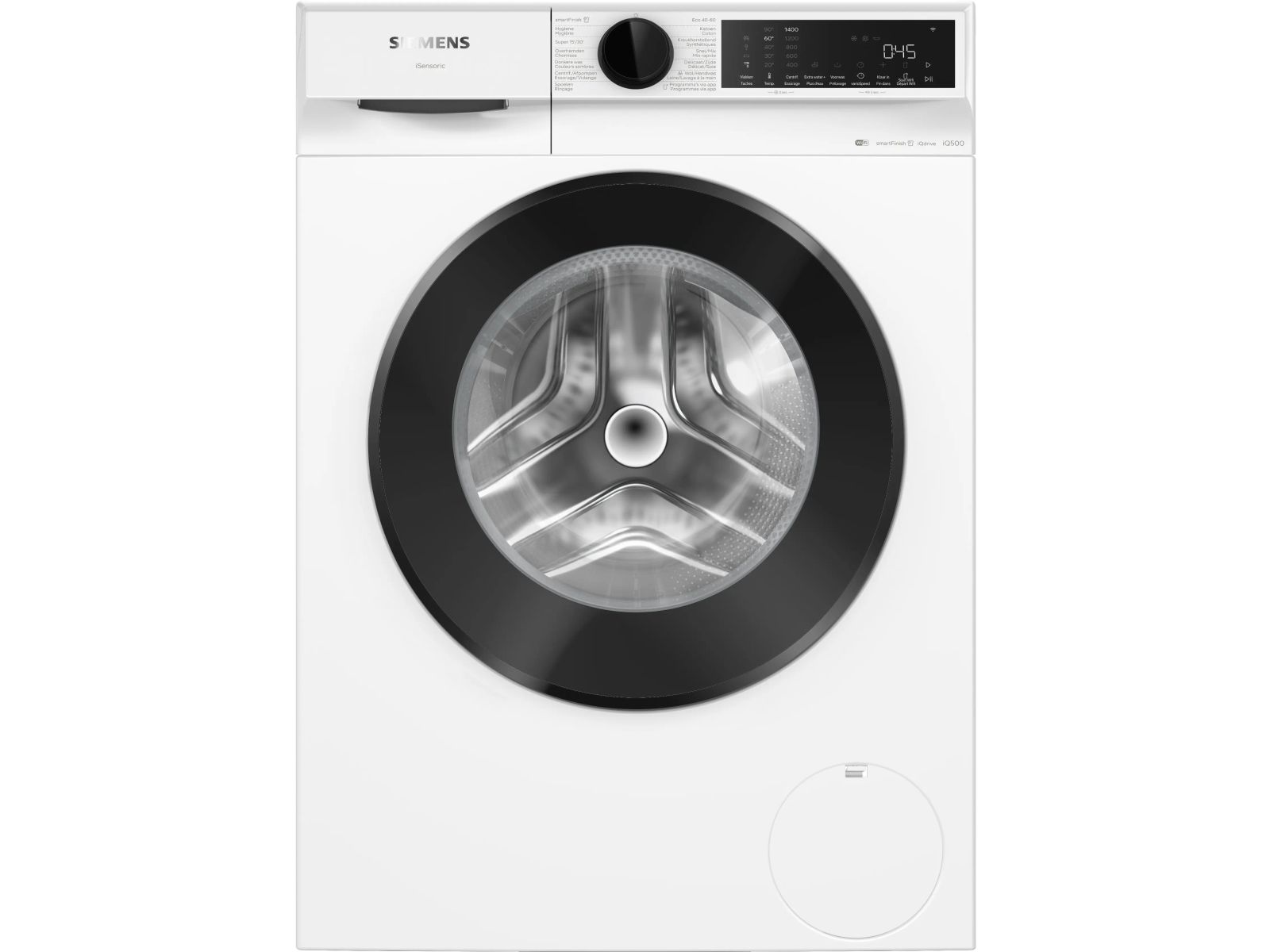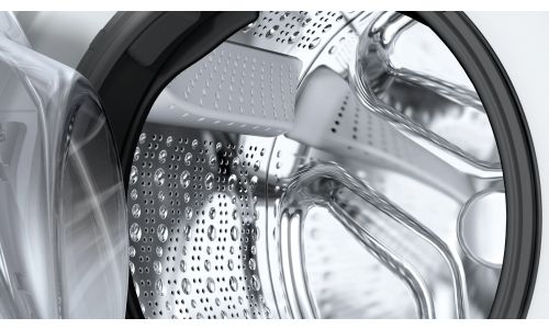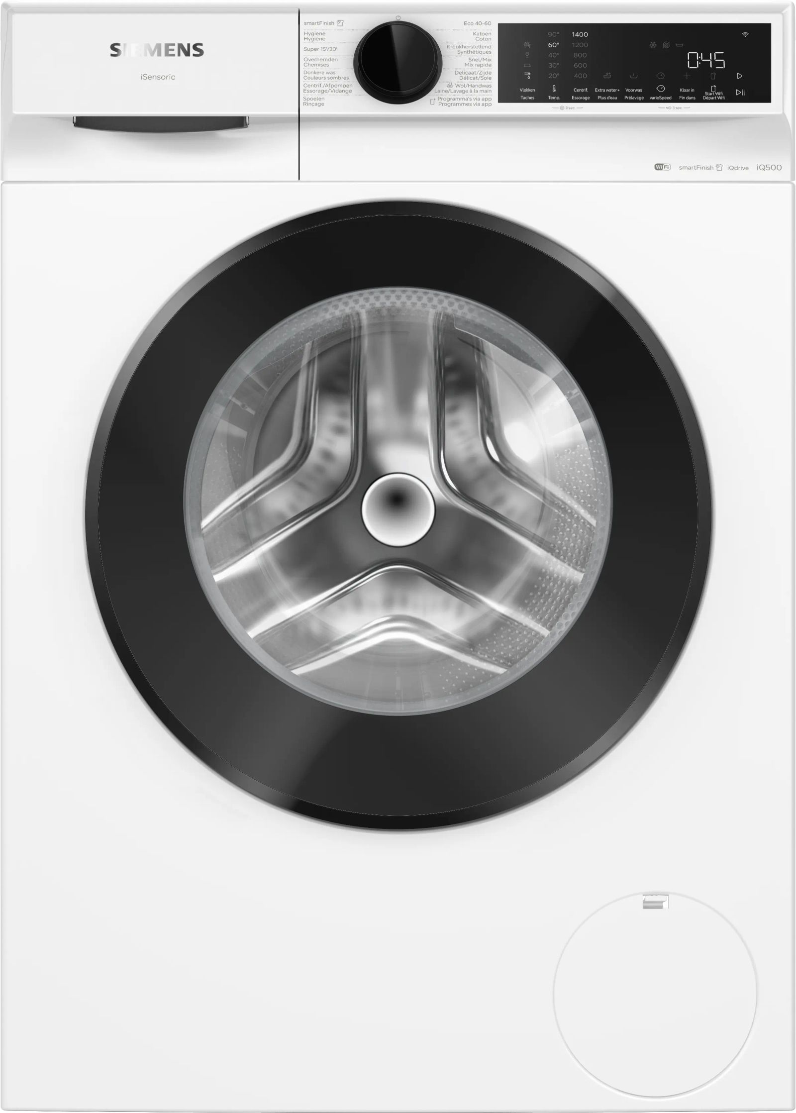 Wasmachine IQ500 Vrijstaand Klasse A, 8,0 kg, 1.400 tr/min, smartFinish, Home connect, groot LED display touch buttons, waveDrum, Aqua Protection Plus, 72 dB, BLDC motor met 10 jaar motorgarantie, Semi 1, black-black Wit A