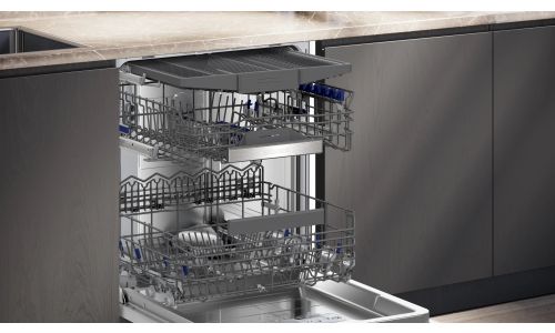 De XXL-vaatwassers benutten volledig het hoge werkblad in moderne keukens. De binnenruimte is met 5 cm vergroot zodat er extra ruimte in de onderkorf ontstaat voor grote borden en schalen. En dankzij de ergonomische plaatsing kunt u de vaatwasser gemakkelijk zonder te bukken in- en uitruimen.