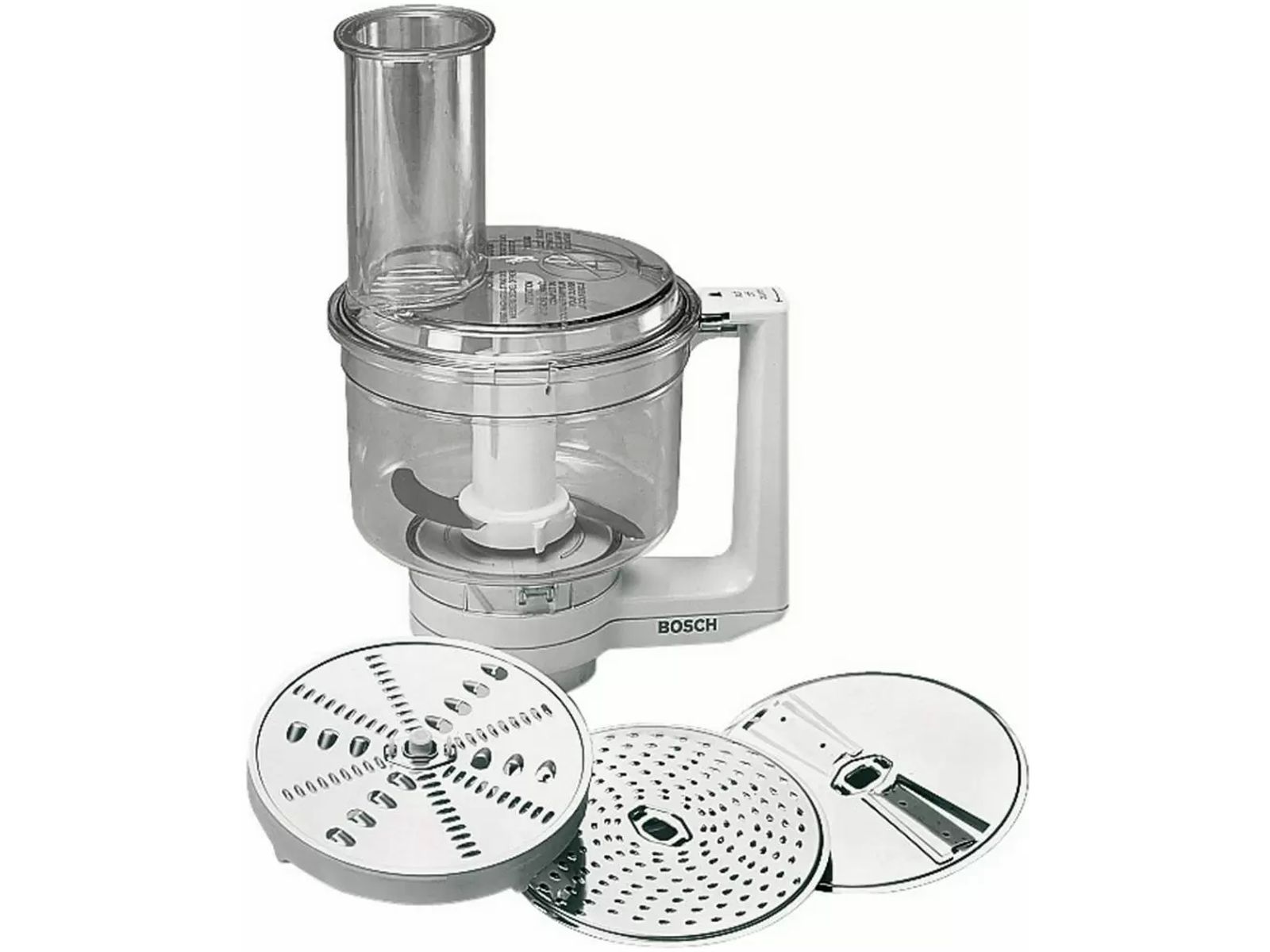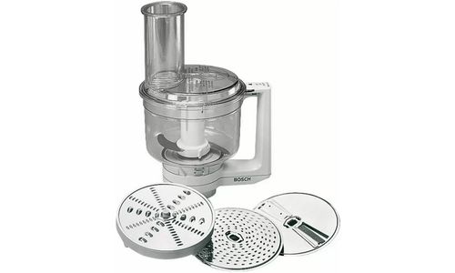 Multimixer. Universeel mes, omkeerbare rasp - en snijschijf (grof/fijn), middelfijne rasp ( in totaal 5 functies ), snijschijvenhouder. Messen en schijven uit inox. Deksel met vulschacht en stamper. Tevens geschikt voor het ' crushen ' van ijsblokjes en het hakken van bevroren fruit en groenten. Inhoud: 0,5 l. Uiterst veilig dankzij veiligheidsvergrendeling van het deksel.
